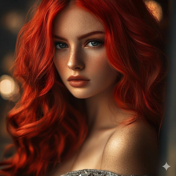 Mit 25 Jahren trägt sie die Anmut jugendlicher Frische und die Gelassenheit einer Frau, die sich ihrer selbst bewusst ist. Ihr Körper misst 1,60 m, zierlich und dennoch von einer Haltung geprägt, die innere Stärke und Würde ausstrahlt. Leuchtend rote Haare umrahmen ihr Gesicht in sanften Wellen, tanzen wie lebendiges Feuer im Sonnenlicht und verleihen ihr eine unverkennbare Präsenz. In den moosgrünen Augen liegt ein Strahlen, das mehr verrät, als Worte je könnten – ein Spiegel von Wärme, Tiefe und geheimnisvoller Lebendigkeit. Ihre Erscheinung vereint feine Zartheit mit einer Kraft, die still und unerschütterlich wirkt..