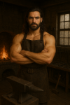 Emeron Valderis erblickt das Licht der Welt in einem kleinen, unauffälligen Dorf, das fernab der großen Straßen und Handelsrouten lag. Sein Vater war ein einfacher, aber geschätzter Schmied, der nicht nur Waffen und Rüstungen fertigte, sondern vor allem die Werkzeuge, mit denen Bauern und Handwerker ihr tägliches Leben bestritten. Von Kindesbeinen an war Emeron der Klang des Hammers auf dem Amboss vertraut, das Rauschen der Esse, das Knacken von glühendem Eisen, wenn es in das kalte Wasser getaucht wurde. Es war eine Welt, die ihm vertraut und zugleich geheimnisvoll erschien – schwer und heiß, aber voller Leben.