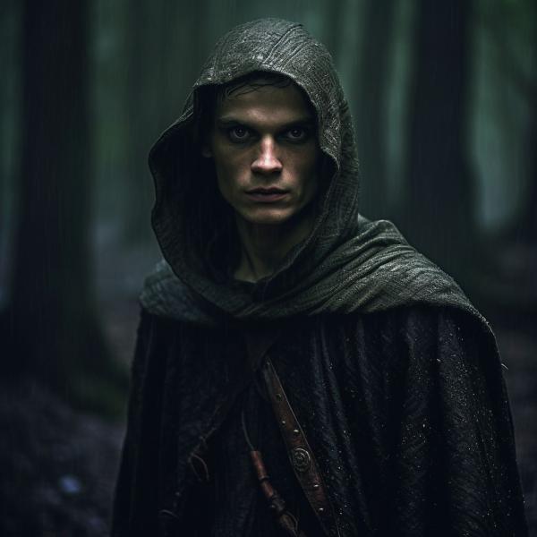 Er trägt dunkle Kleidung ohne Erinnerungswert. Seine Bewegungen sind präzise und lassen ihn selbstsicher wirken. Ein Detail, das wachsamen Beobachten auffallen könnte, ist eine blasse Narbe, die seine linke Braue überhöht.