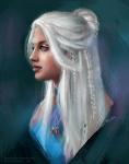 Auf den ersten Blick wirkt die Erscheinung der winzigen Frau eher unscheinbar, fast schmuddelig könnte man meinen, doch das ist wohl ein trügerisches Bild, geboren aus den sonderbaren silber-mausgrauen, mittlerweile vermehrt weißen Haaren. Haare, die ihr den Rücken, wie weiße Gischt hinab kriechen und in allen erdenklichen Silberschattierungen glänzen und in welchen sich nicht selten hier und dort kleine geflochtenen Strähnen, verziert mit Holzperlen oder dergleichen, eingeflochten befinden.