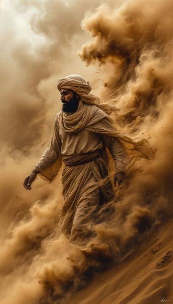 Mit seinen 1,67 m ist er zwar für einen Wüstensohn eher durchschnittlich groß, im Verhältnis zu den grünländischen Nachbarn aber doch recht klein geraten. Dafür weist er ein bemerkenswert breites Kreuz auf, was nicht so ganz zum priesterlichen Ornat des Khaliq Eluv's mit der tief dröhnenden rauen Stimme passen will. Wer ihn schon was länger kennt, weiß, dass er vor seiner Weihe Salzschürfer aus Akmene war. Die durchtrainierte Statur ist also wohl dem alten Beruf zuzuschreiben. Offenbar hält der Yazir-Sohn jene Statur aber auch konsequent bei, soweit das unter den meist weiten Stoffen zu erahnen ist.