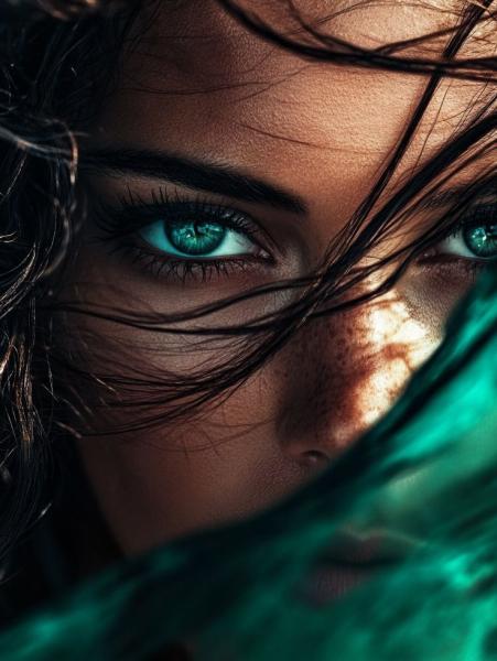 Die wachen Augen, die einem aus klarem, vollem Lindgrün entgegensehen, tragen eine tiefe Herzlichkeit, die einen da einladend ansieht. In ihrem Blick findet sich jedoch ebenso ein eindeutiger Wille, der ihre Augen älter wirken lässt, als ihre sonstige Erscheinung es zeigt.